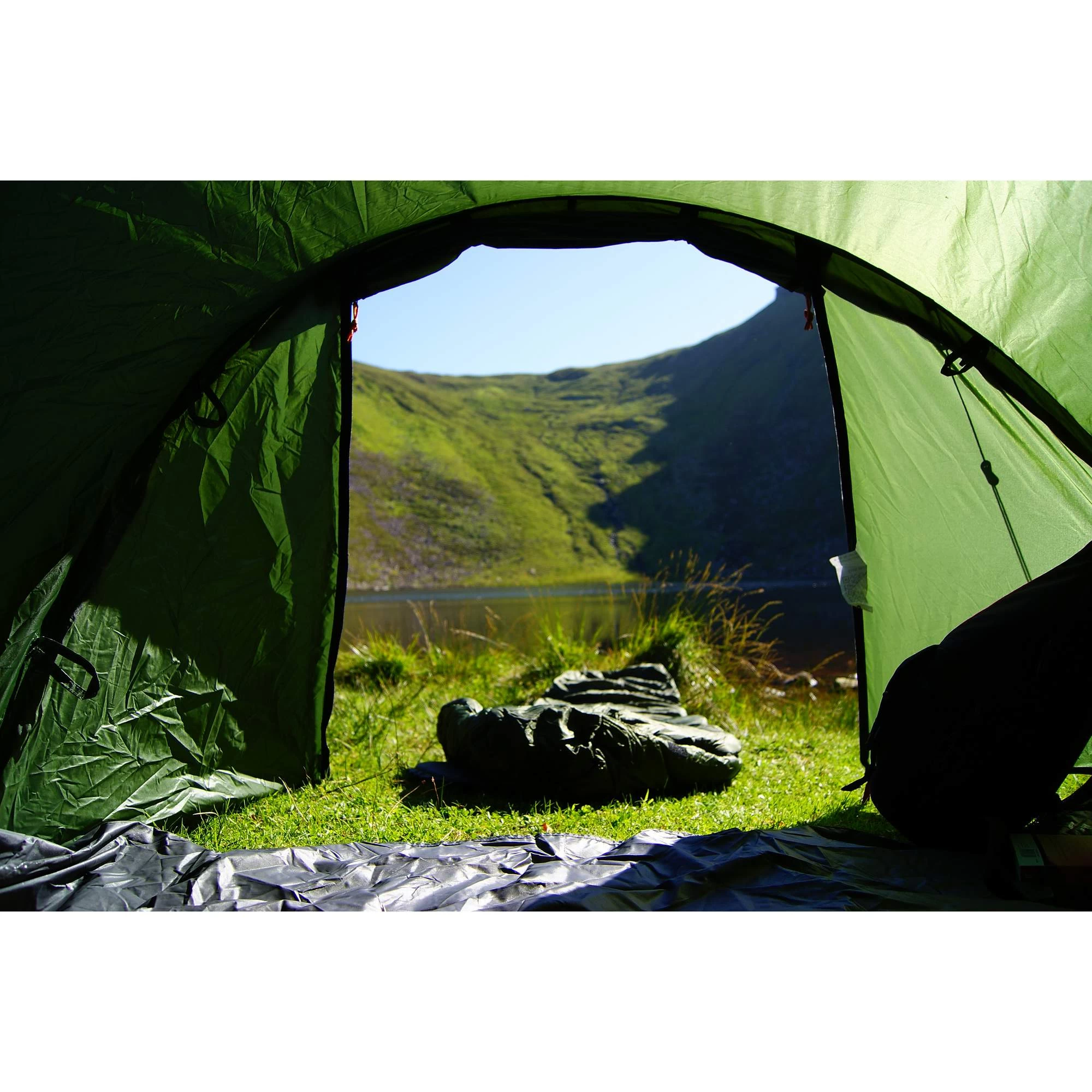 Geht es mit dem Duo allein auf Tour, bietet es Platz für zwei Personen. In der Apsis können Wanderstiefel und Daypacks gelagert werden. Das Innenzelt aus Mesh hält dir Moskitos vom Leib, während du von deinem nächsten Abenteuer träumst. Für ausreichende Belüftung sorgen die beiden aufstellbaren Hochlüfter und der seitliche Tieflüfter.