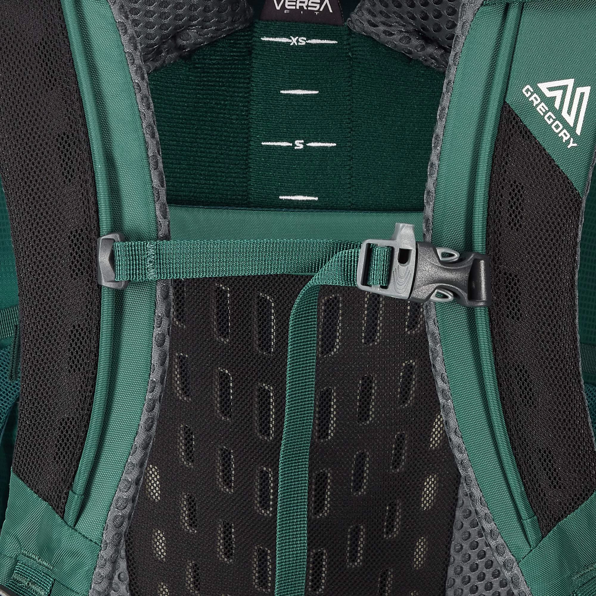 Das VersaFit-System hat einen leichten Stahlrahmen mit Querlenkern, die für einen stabilen Sitz ohne Flexibilitätsverlust sorgen. Die Traglast des Rucksacks wird hierbei schlüssig auf den Hüftgurt übertragen. Das perforierte 3D-Rückenpolster sorgt für eine angenehme Belüftung des Kontaktrückens. Zudem kann die Rückenlänge stufenlos per Klett verstellt werden.