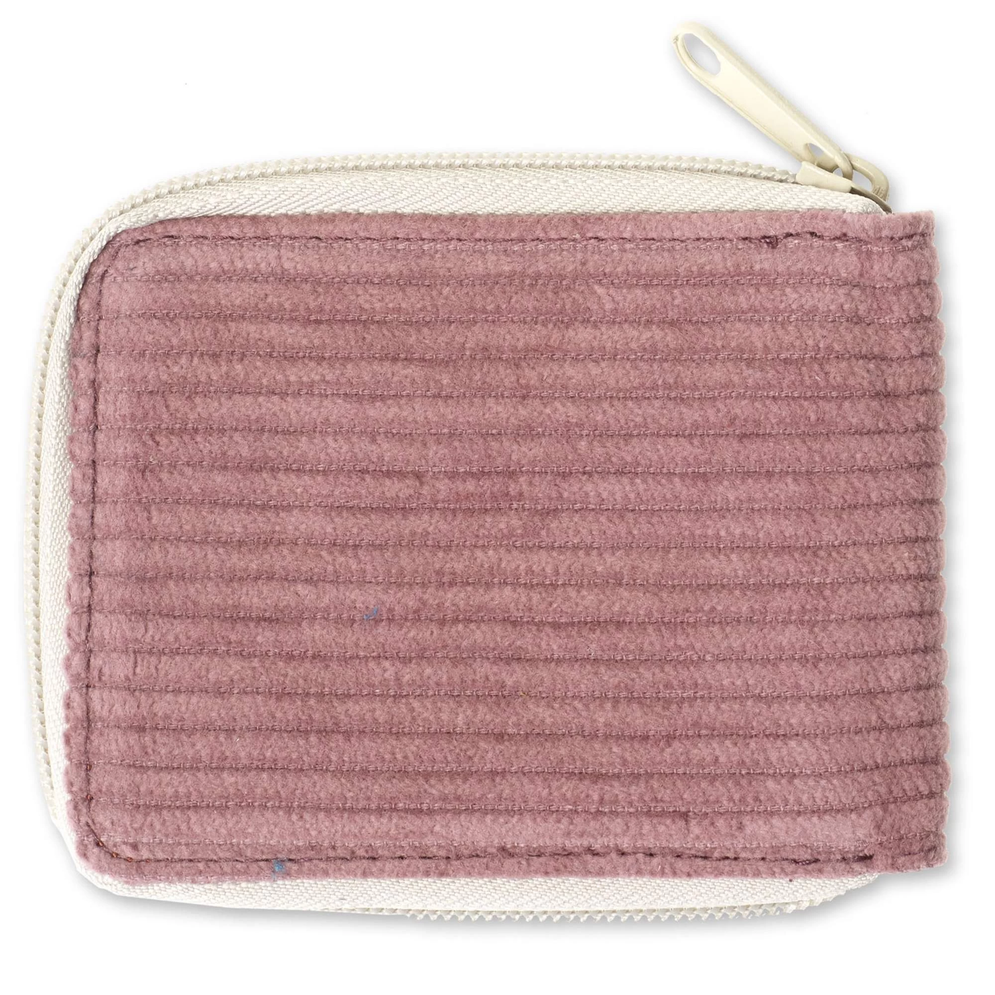 Das kleine Portmonee für Reise und Alltag besteht aus robustem, breit gestreiften Baumwollcord. Die Farben sind herrlich leuchtend und auf der Front ist das Kavu-Berglogo aufgenäht.