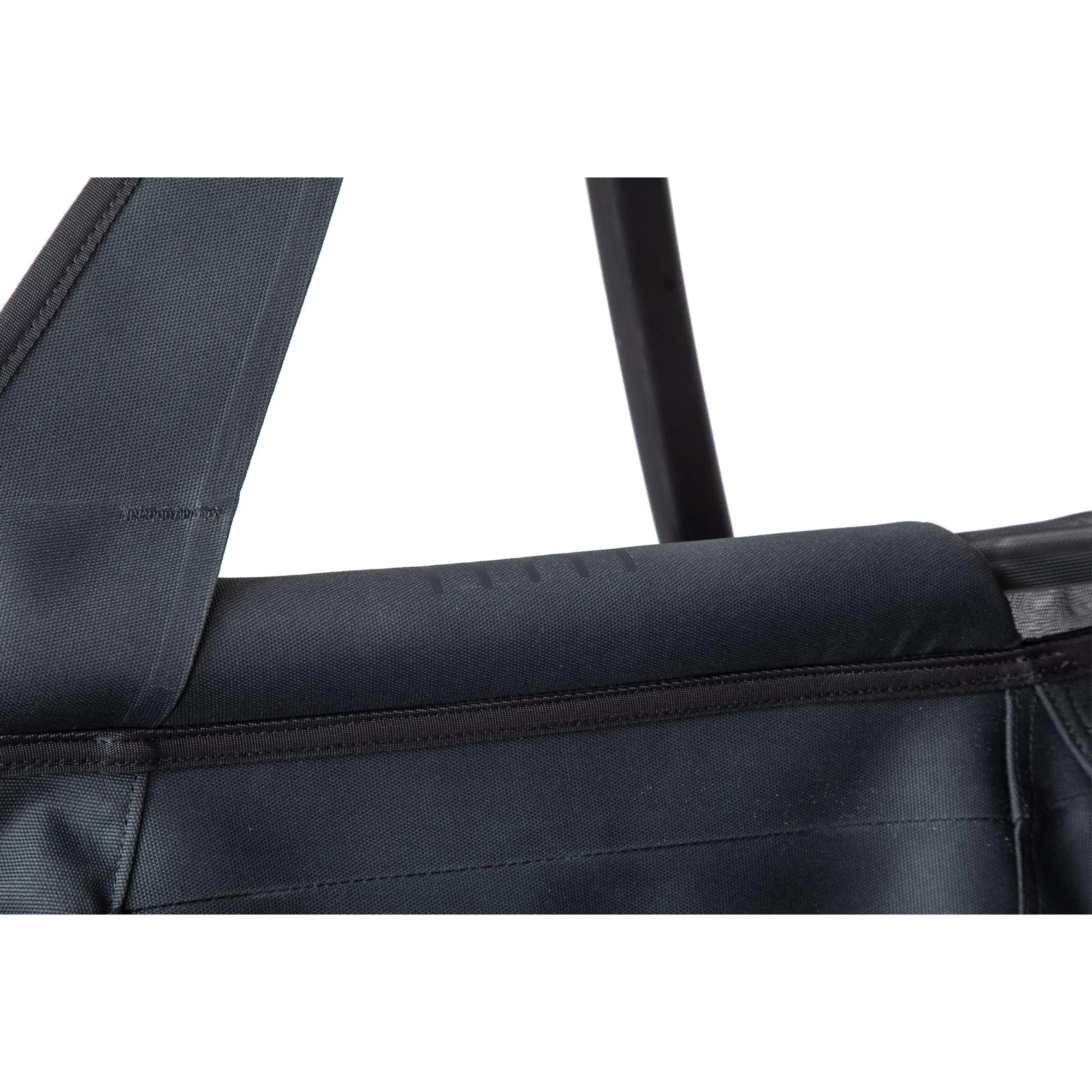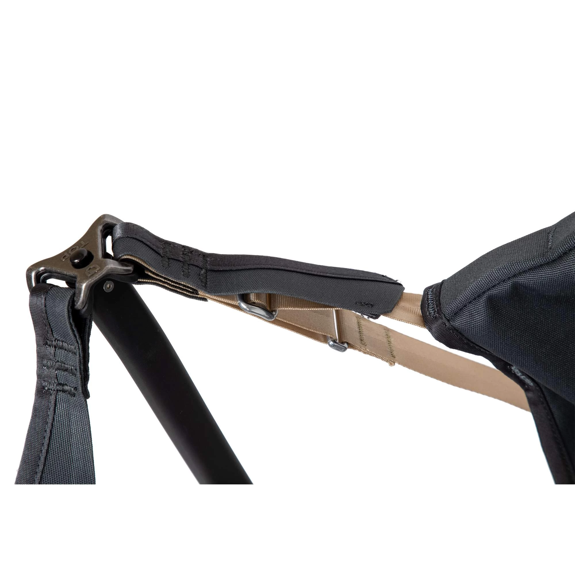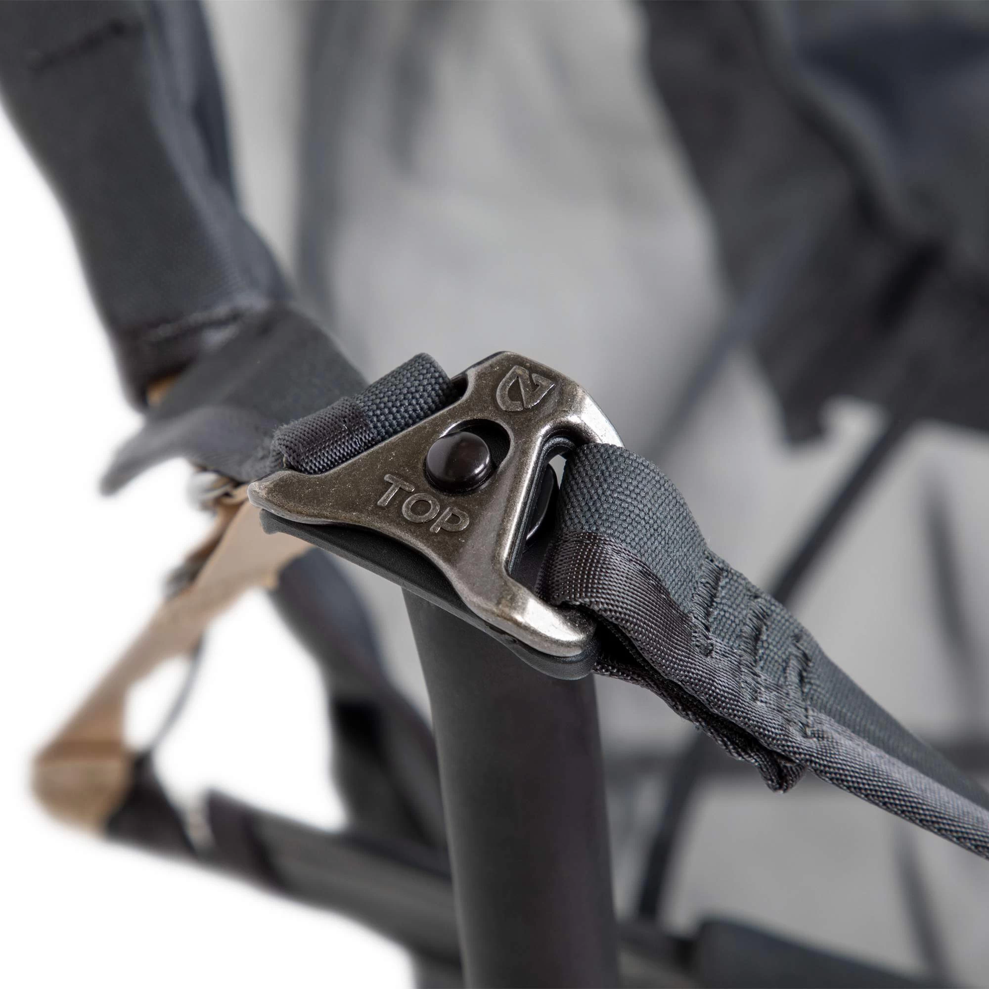 Verpackt in einer gepolsterten Tragetasche, kannst du den Stuhl bequem in einer Duffle oder deinem Tagesrucksack verstauen. Der Aufbau ist kinderleicht. Die Gestänge sind mit einem Gummizug verbunden, wodurch der Aufbau intuitiv gelingt.