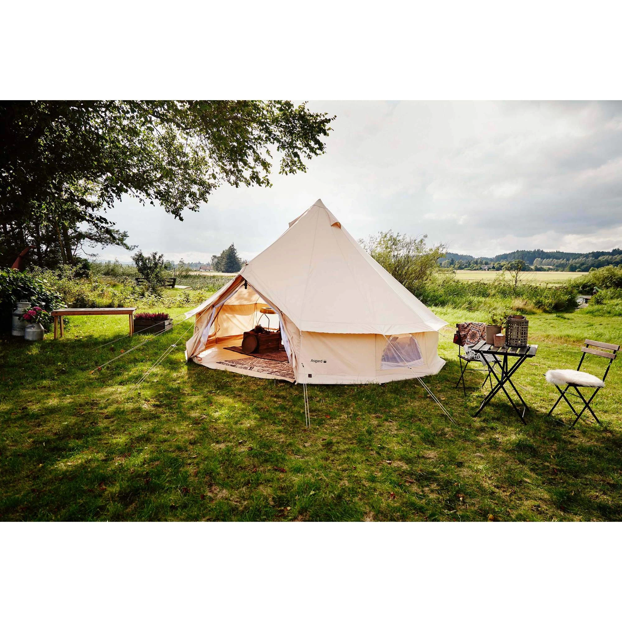 In Kombination mit dem Baumwollmaterial ist das Asgard ideal für sommerliche Temperaturen. Besonders an heißen Tagen wird der Unterschied zu Zelten aus Kunststoff bemerkbar. Während sich andere Zelte aufheizen und stickig werden, kannst du dich den gesamten Tag im wohltemperierten Baumwollzelt aufhalten.