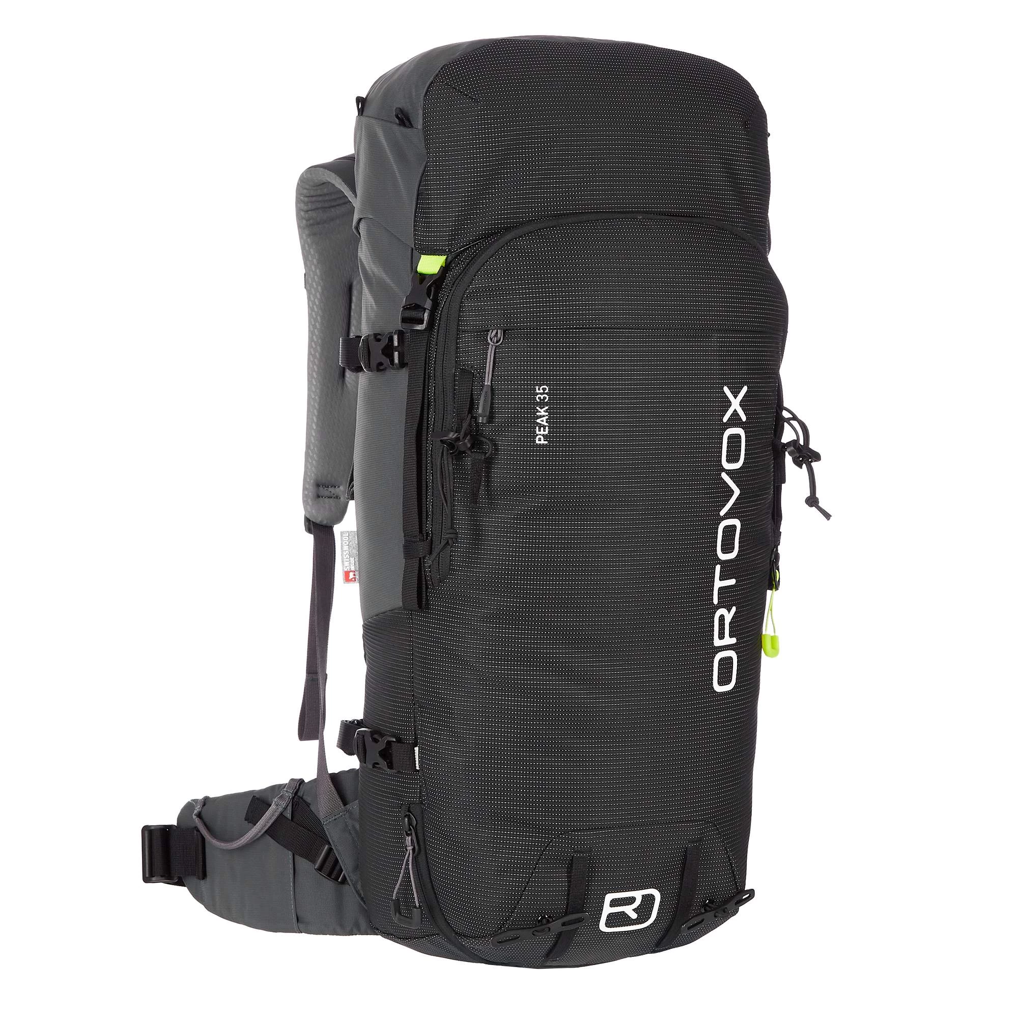 Ortovox hat dem Peak 35 ein neues Tragesystem verpasst, das Swisswool 3D Back System. Dafür wurden Wollvlies, ergonomische Schaumeinsätze und ein 3D-geprägtes Obermaterial clever kombiniert. Das Ergebnis ist ein Kontaktrücken, bei dem du trotz des festen, körpernahen Sitzes ein trockenes Tragegefühl hast. Denn an allen Kontaktpunkten befinden sich Wollpads und Wolle hat den Vorteil, dass sie bis zu 30 Prozent ihres Eigengewichts an Feuchtigkeit aufnehmen kann. Die Wollpads kommen übrigens auch an Schulter- und Hüftgurten zum Einsatz.