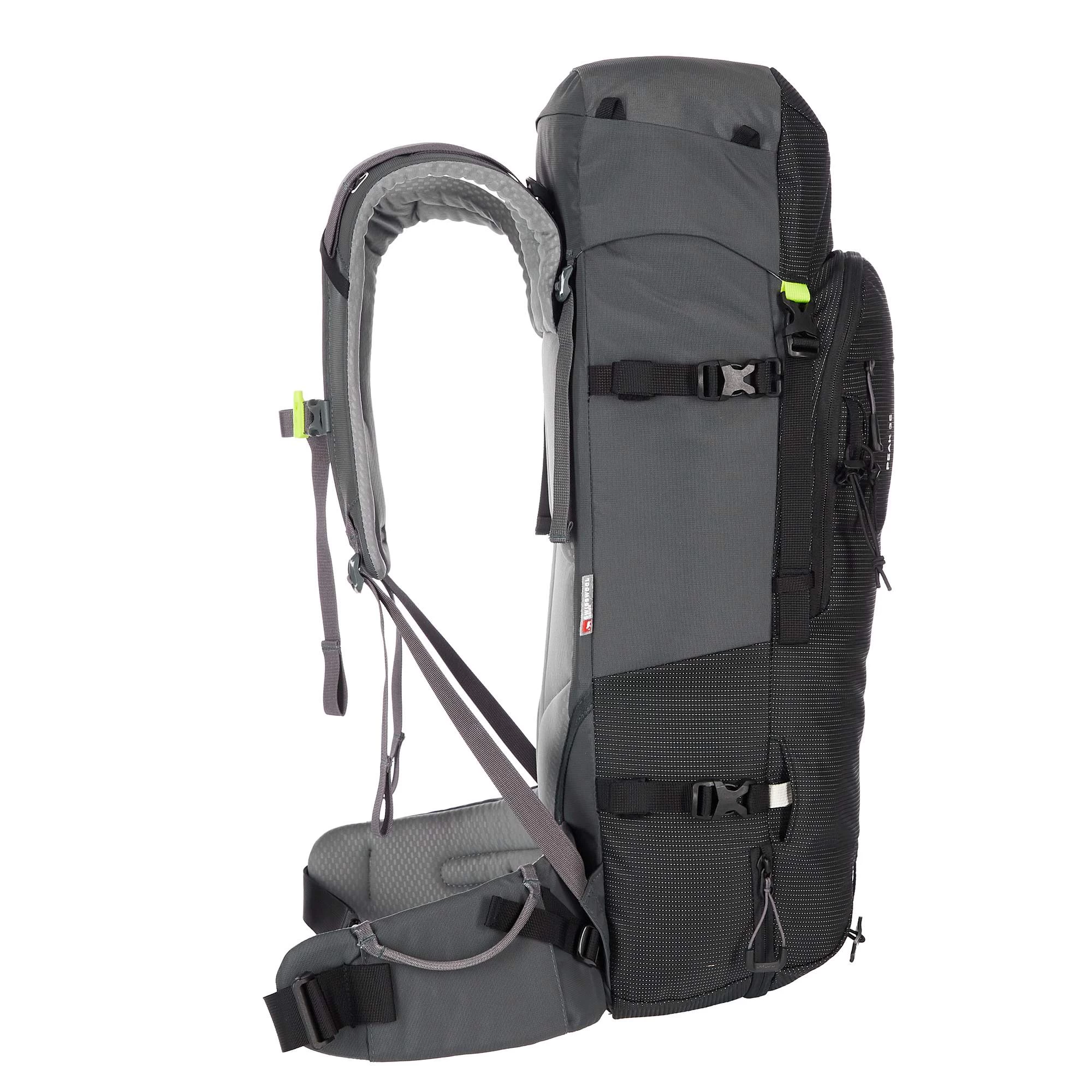 Die Gewichtsverteilung und hohe Stabilität des Tragesystems wird von Metallstreben unterstützt. Die Schultergurte und der Hüftgurt sind angenehm breit und ergonomisch vorgeformt.