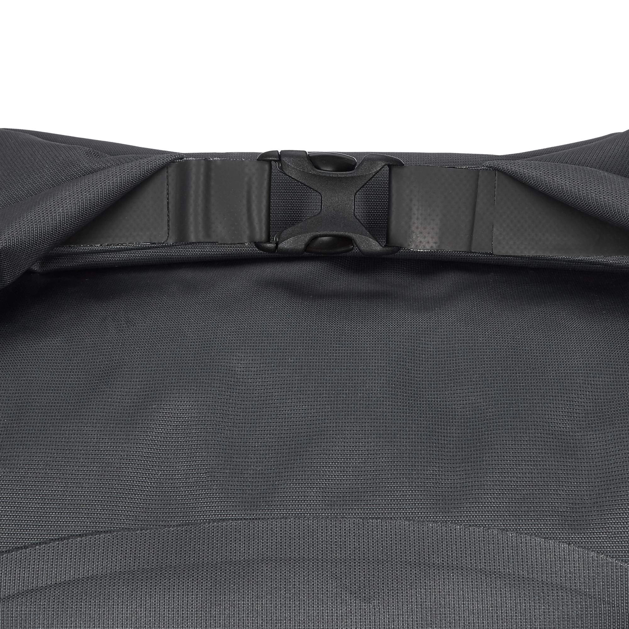 Das abriebfeste Material des Trad 22 Dry hat eine Wassersäule von 50.000 mm und seine Nähte sind Hochfrequenz verschweißt. Die RV schützen vor Sprühwasser (Schutzklasse IPX3). Der Rollverschluss schottet das Regenwasser zuverlässig vom Hauptfach ab und er ist so positioniert, dass du auch mit Helm nicht gegen ihn stößt.