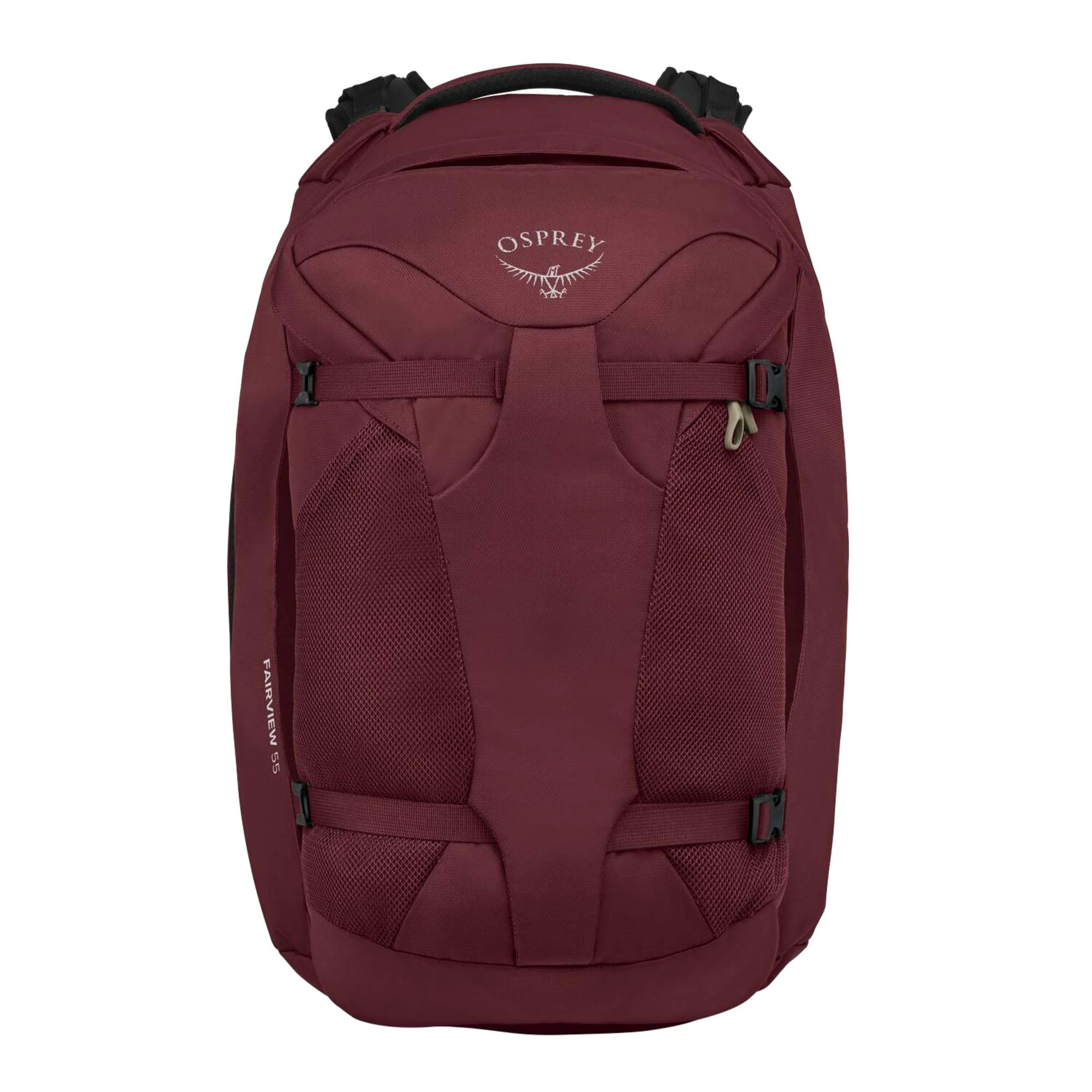 Zum Transport im Flugzeug oder Bus kannst du das komfortable Tragesystem abdecken. So verhaken sich die Gurte und Schnallen nicht mit anderen Gepäckstücken. Das Tragesystem hat einen ergonomisch geformten Hüftgurt und ist auf die weibliche Anatomie zugeschnitten – von den Schultertragegurten bis zur Rückenplatte.