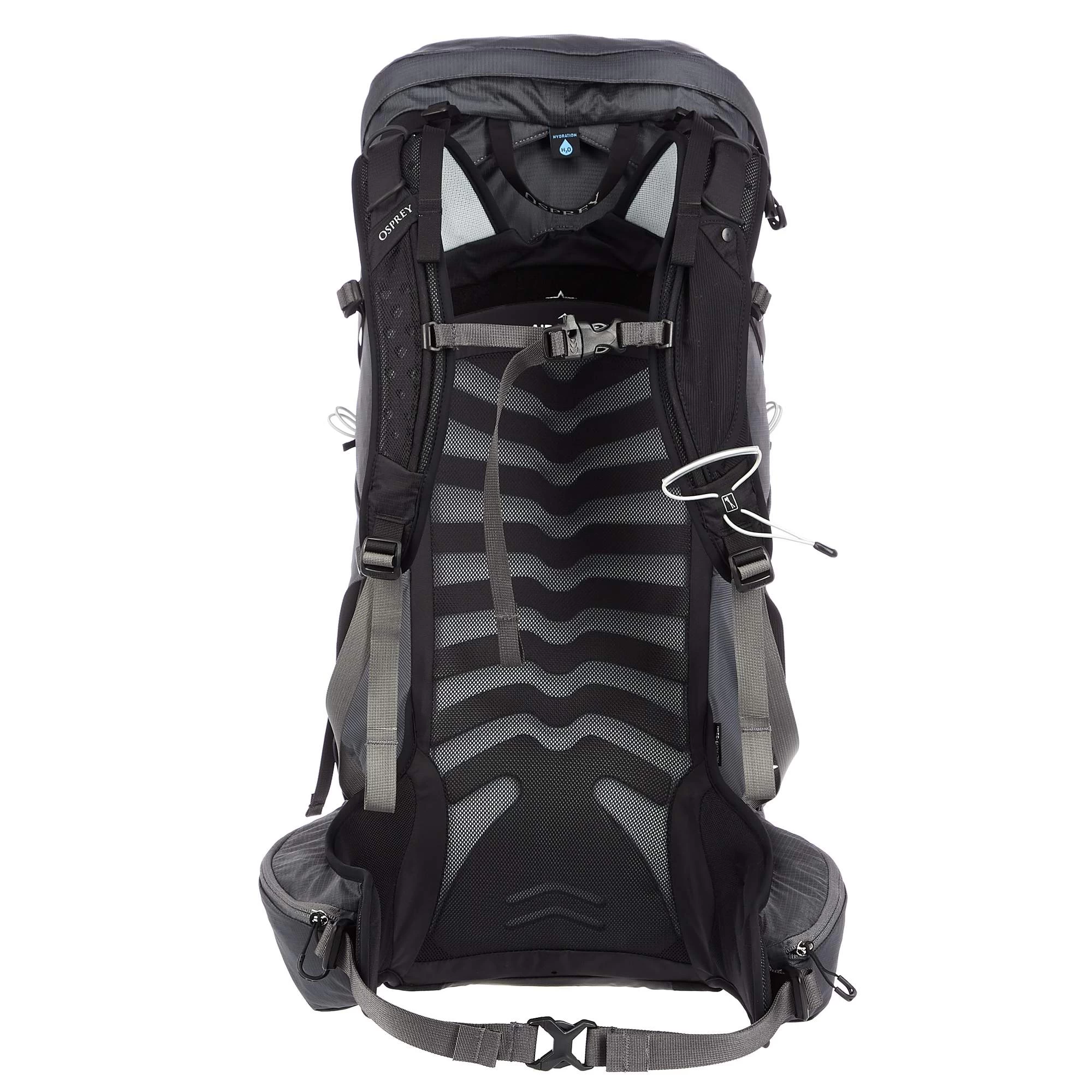 Die Talon/Tempest-Reihe wurde von Osprey mit dem modernen AirScape-Rückensystem ausgestattet. Die feste HDPE-Rückenplatte ist spritzgegossen und bleibt auch bei hoher Traglast verwindungssteif. Dabei passt sich das Material immer noch dem Rücken an. Der Meshbezug sorgt für eine sehr gute Belüftung des Rückens.