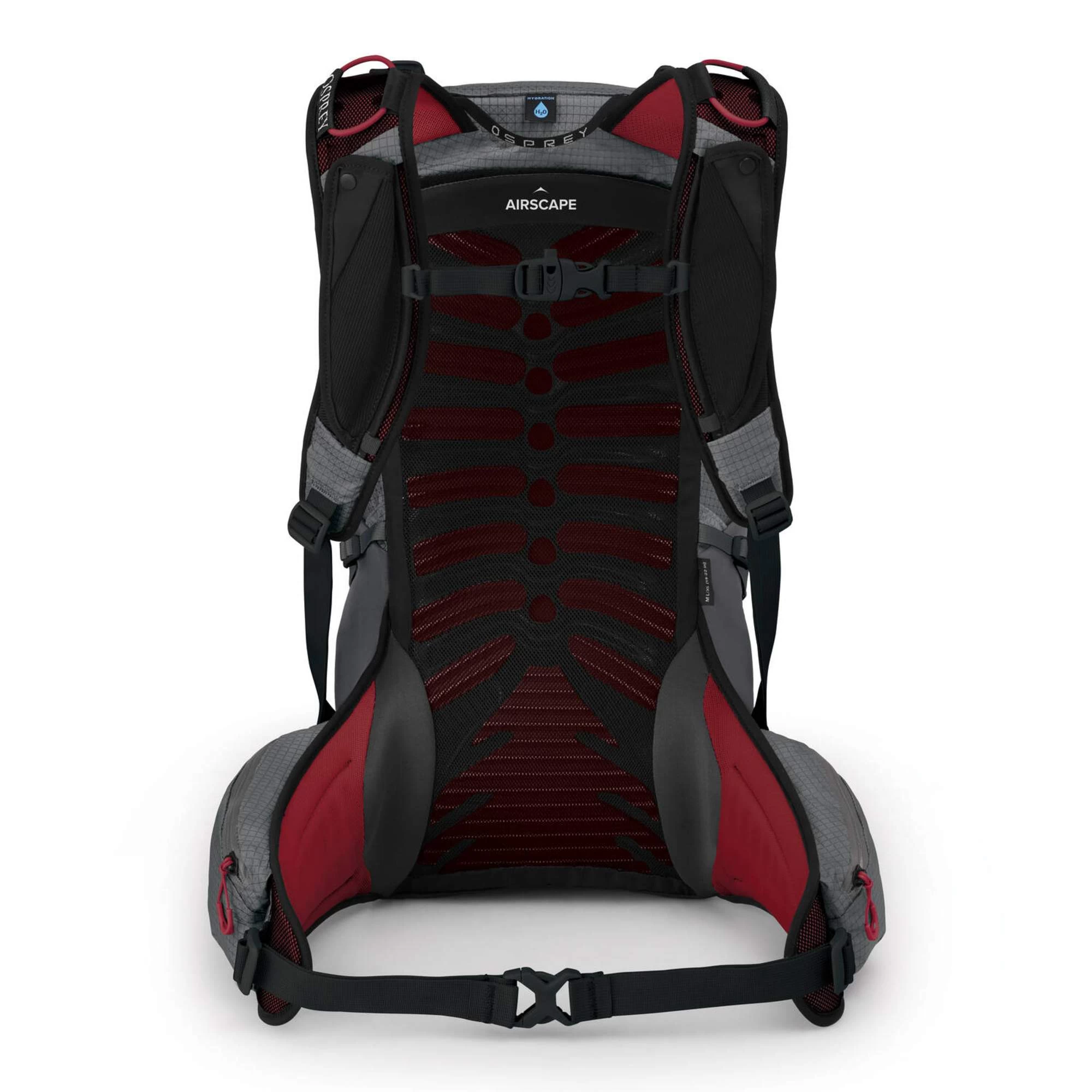 Beim Talon Pro 20 kommt Ospreys neues AirScape-Rückensystem in leicht abgewandelter Form zum Einsatz. Die spritzgegossene HDPE-Rückenplatte ist verwindungssteif, aber leichter und etwas biegsamer als beim klassischen Tempest. Dadurch passt sie sich sehr gut an deinen Rücken an. Ein Meshbezug sorgt für eine sehr gute Belüftung. Den Talon Pro gibt es in zwei Rückenlängen, die jeweils noch verstellbar sind.