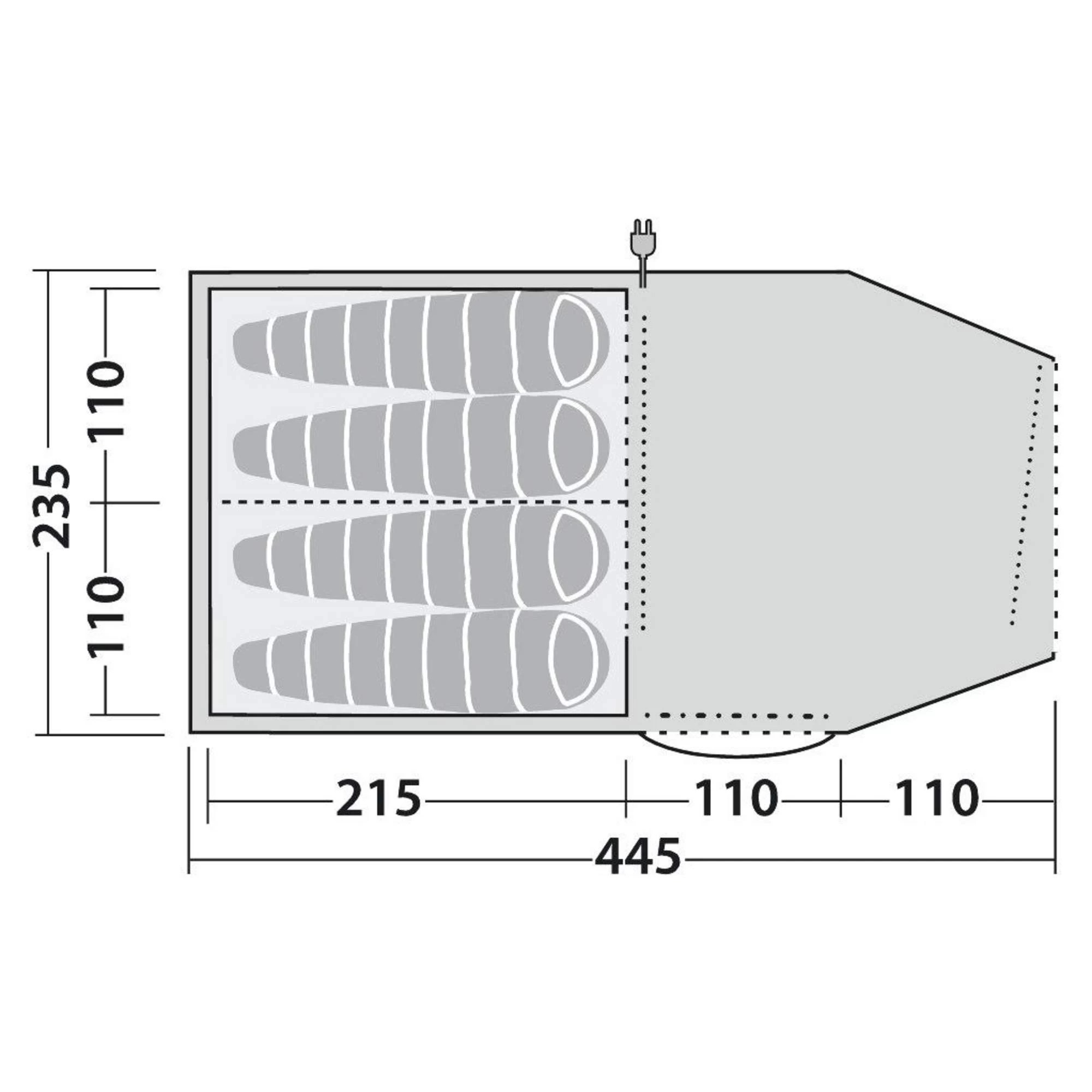 - Abgedunkeltes Innenzelt mit herausnehmbarer Trennwand