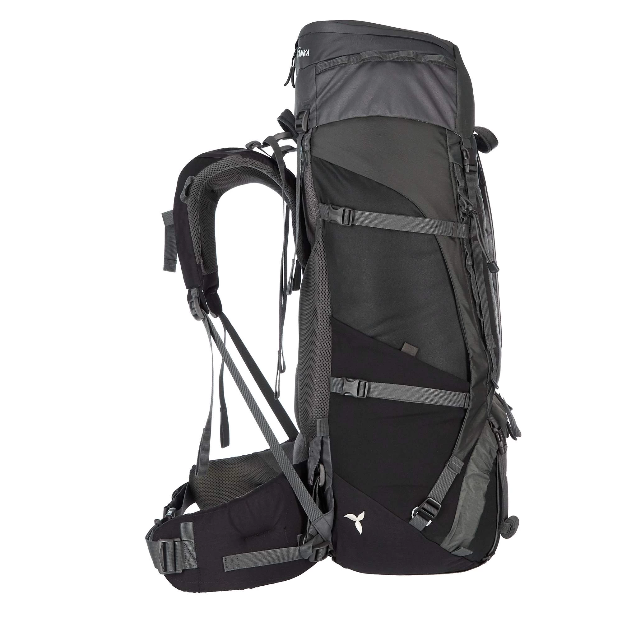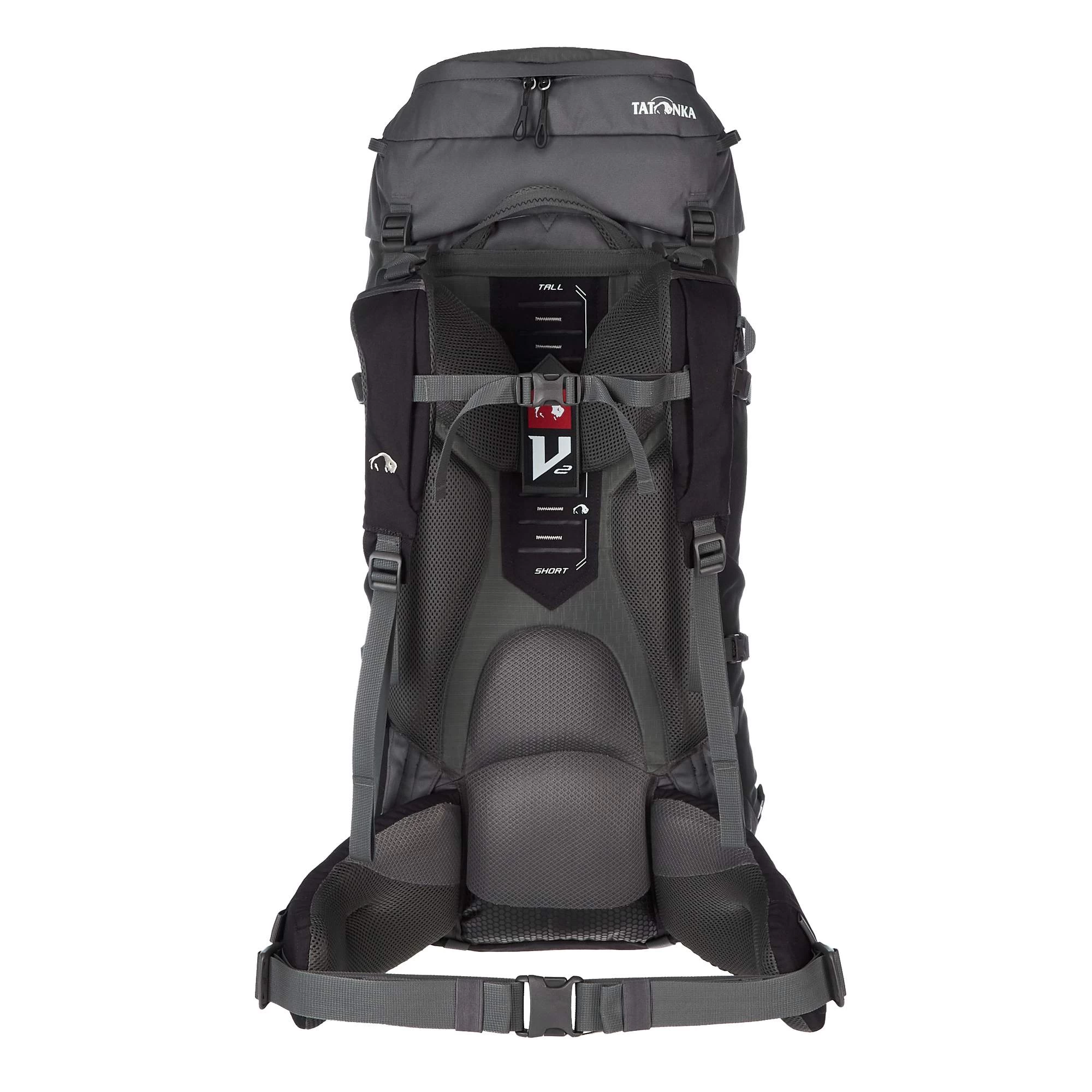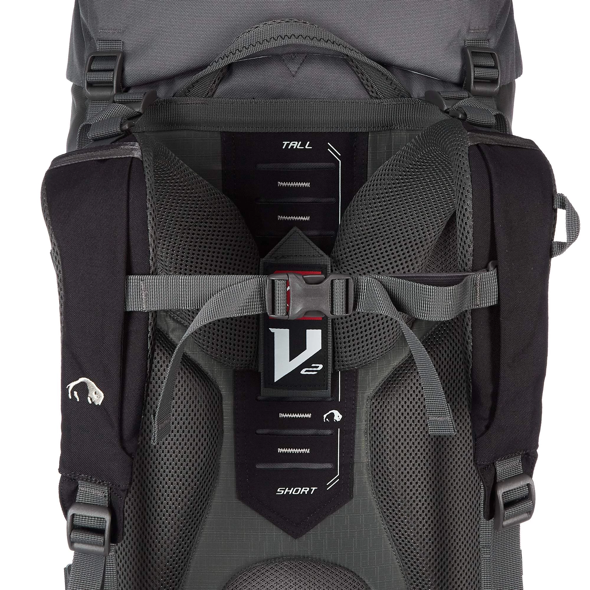 Mit dem V2-Tragesystem schulterst du mittlere bis hohe Lasten komfortabel und kannst dich dabei auch noch sehr frei bewegen. Möglich wird dies durch mehrere speziell angeordnete Stäbe, welche die Lastenübertragung effizient umsetzen, ohne die Flexibilität einzuschränken. Strategisch gesetzte Polster lassen Platz für Luft und gewähren einen guten Körperkontakt. Der ergonomisch ausgeformte Hüftgurt gewährleistet optimalen Halt ohne zu verrutschen und ist in zwei Richtungen anpassbar. Auch hier stabilisiert ein Stab den Sitz. Die Schultergurte kannst du äußerst großzügig in der Höhe verstellen und über die Lastenkontrollriemen den Sitz perfekt an dich anpassen.