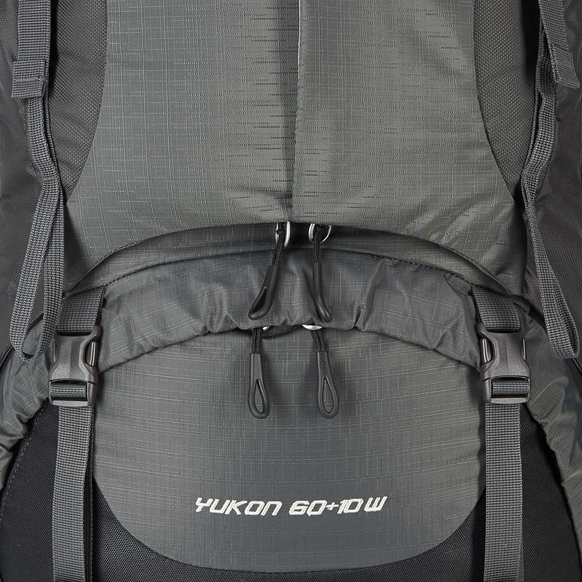 Der Yukon 60 + 10 ist ein absoluter Trekkingklassiker und kommt hier in der Variante für Frauen und in schlichtem Grau-Schwarz. Er bietet hohen Tragekomfort und praktische Bedienung.